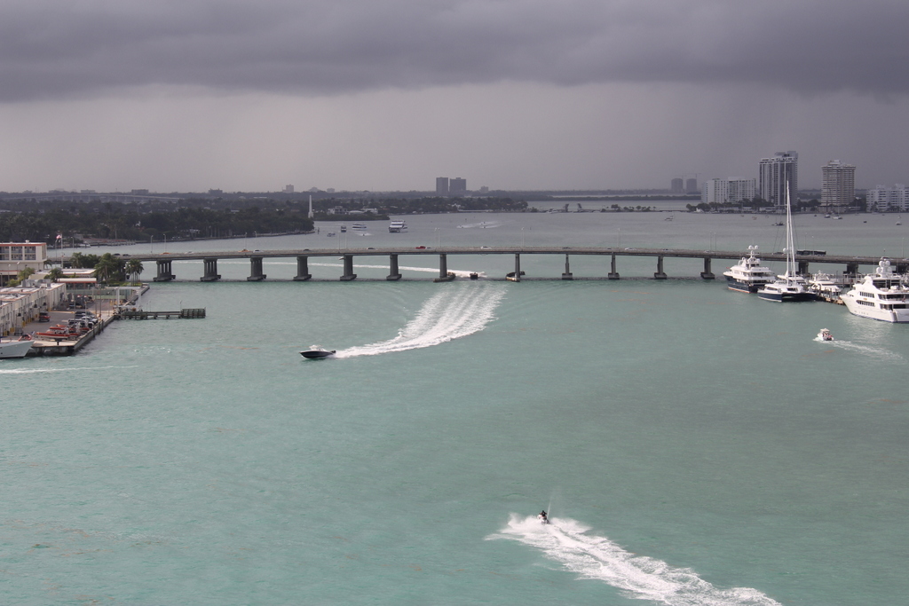 Под ногами путается местный круизный кораблик. Народ осматривает Майами с моря.Блин. Движение как в Москве. Даже пираты вышли на охоту.Преследуют водное такси ... |