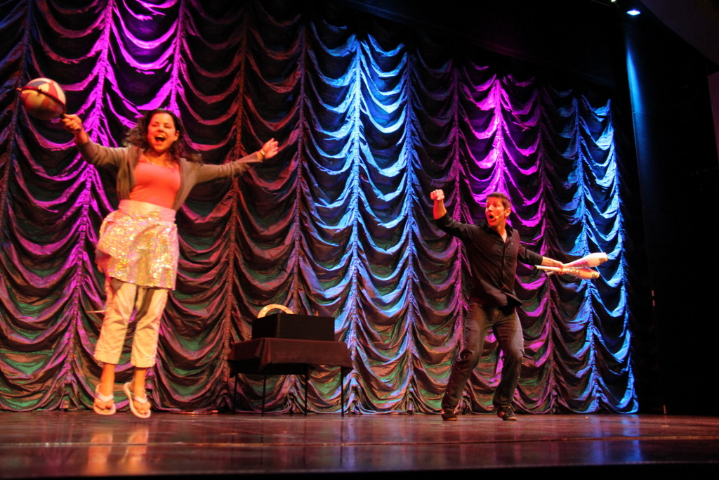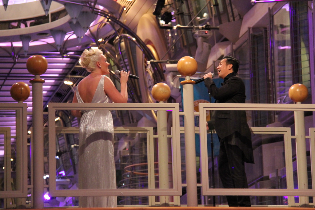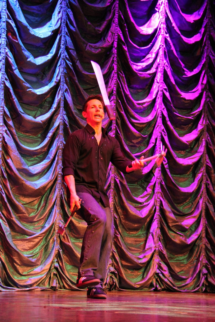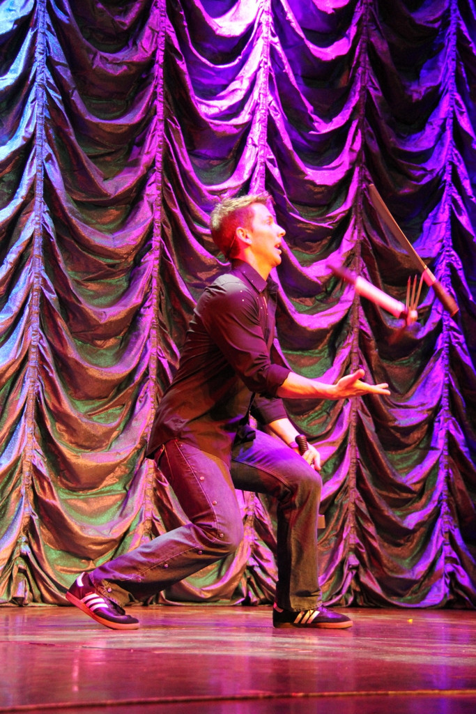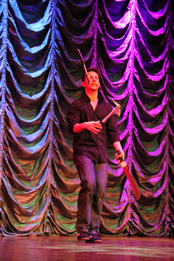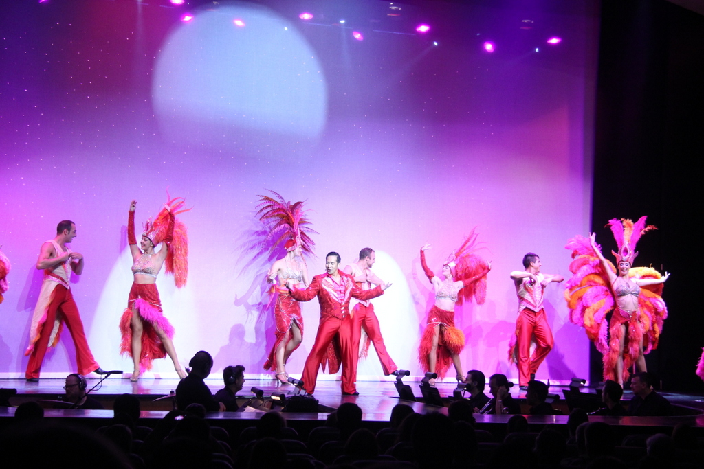 А вот выступление жонглёра. Как раз в тот вечер была сильная качка, не представляю как он справлялся.Чувиха из зала ему хорошо подмогла ... |
