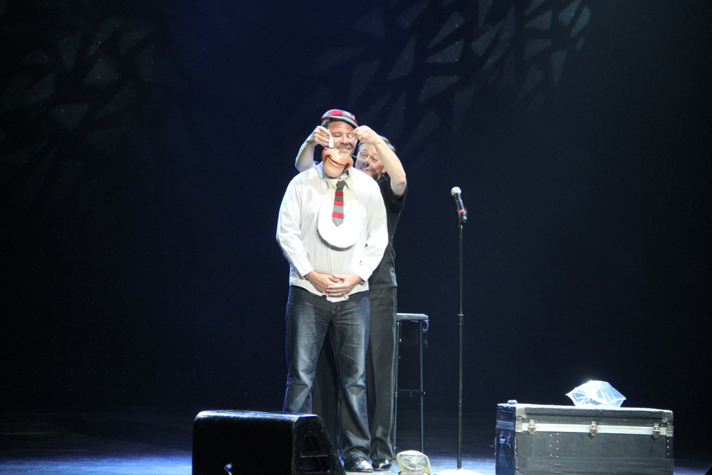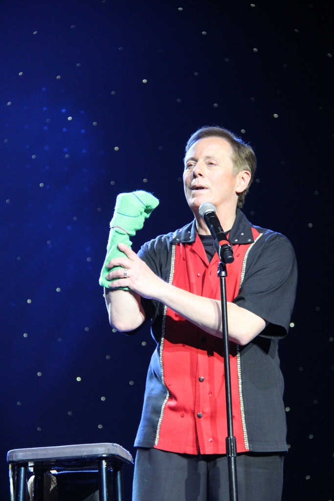 Чувак прикалывается с куклой ковбоем. У меня даже видео этой фигни есть. Прикольно получилось. Он говорит что даже в Белом Доме с этой хохмой выступал. ... |