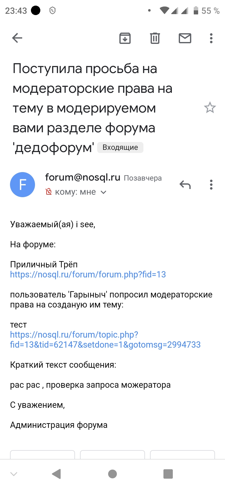 Гарыныч 10.05.2021, 23:39 i see 10.05.2021, 23:36 Ну вообще запрос сработал, пришло сообщение. ... |