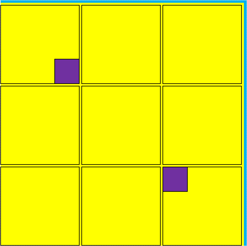 Вот пробую нарисовать план куба. Это план стандартного жилого этажа 1х1 км и высотой ~45 метров. Этаж разделён на 9 блоков По двум краям этажа проходят в несколько уровней линии метро ориентированные по сторонам света. Разные уровни линий метро для разных нужд: грузовая, местная, экспресс. Для дальних коммуникаций используется пространство отдельного этажа. Два фиолетовых квадрата - это вентиляционные шахты 100х100 м. В самом начале, они закрыты для наружной атмосферы и циркуляция воздуха происходит только внутри куба, но когда внешняя атмосфера планеты уже станет достаточно насыщена кислородом, воздух будет спускаться из атмосферы в одну шахту на глубину в несколько километров, а по другой он будет выходить из куба наружу. Такая циркуляция воздуха позволит легче поддерживать кислородный и тепловой баланс на этажах куба. ... |