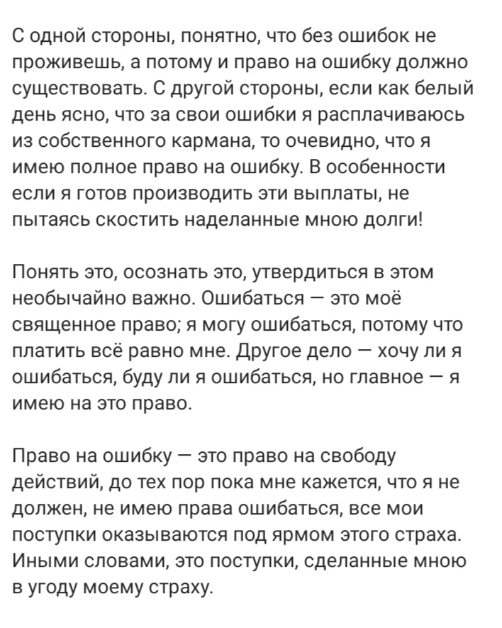 Авдотья 03.02.2020, 20:08 Почему ты мне не даешь право на ошибку? Авдотья 03.02.2020, 20:08 *Курпатов популяризатор, про право на ошибку не он первый придумал. Пример для наглядности ... |
