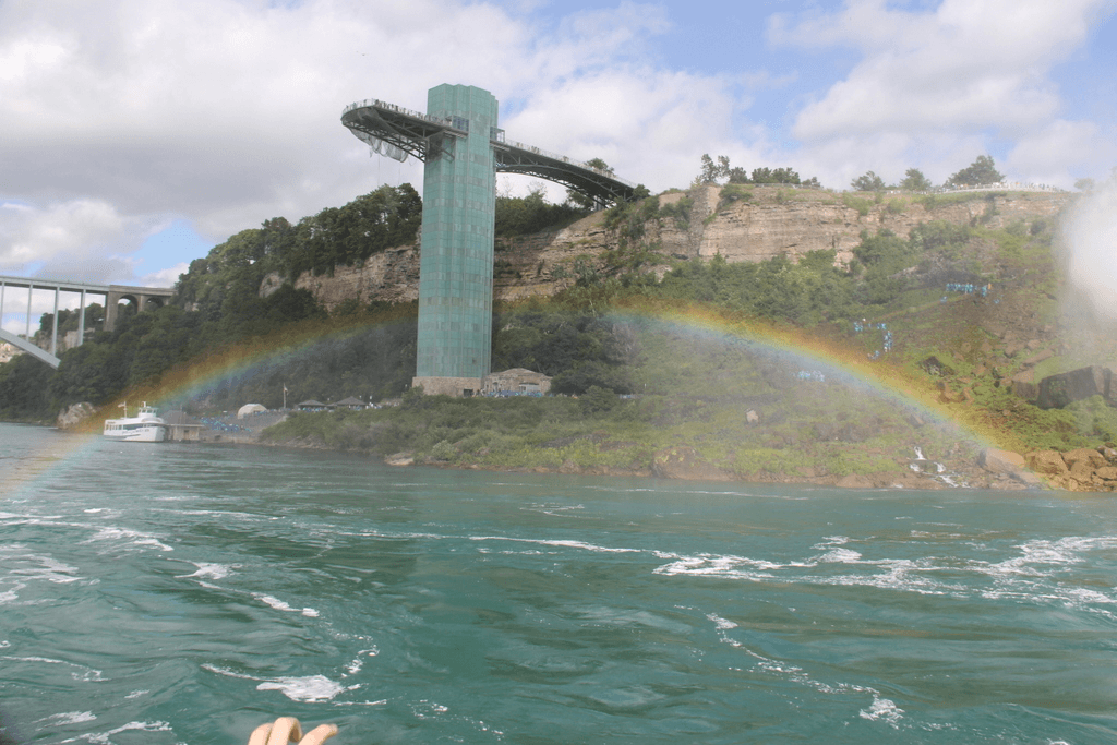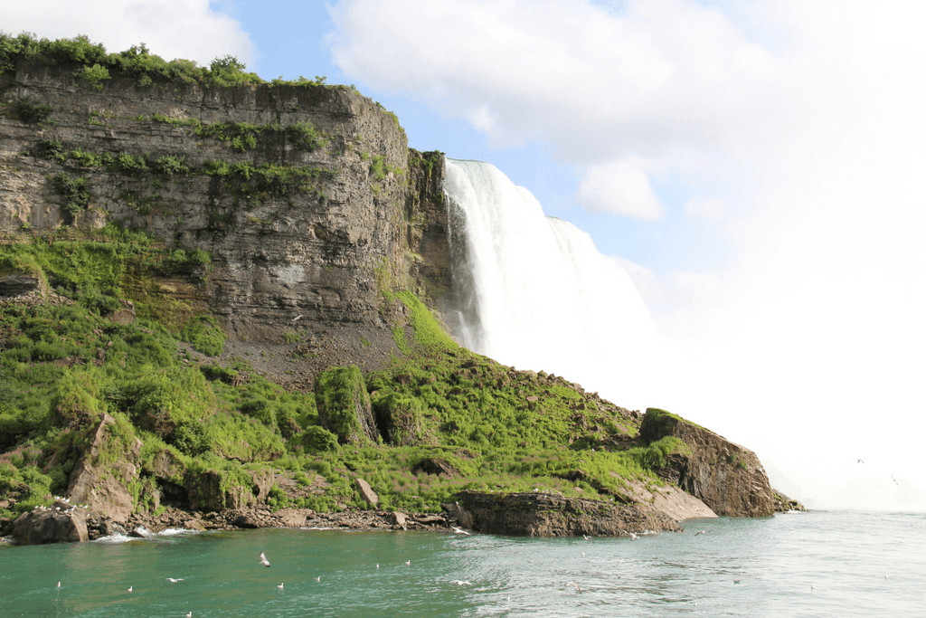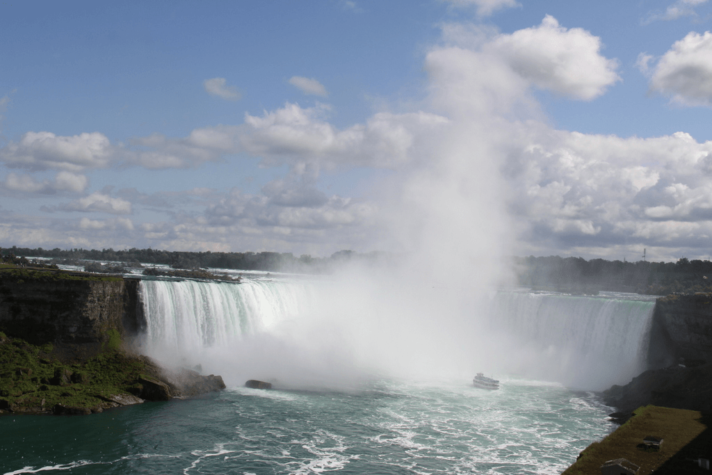 Практически всегда от водопада поднимается столб брызг/пара/водной смеси на несколько сотен метровНу и почти всегда стоит радугаЭто американский водопад ... |