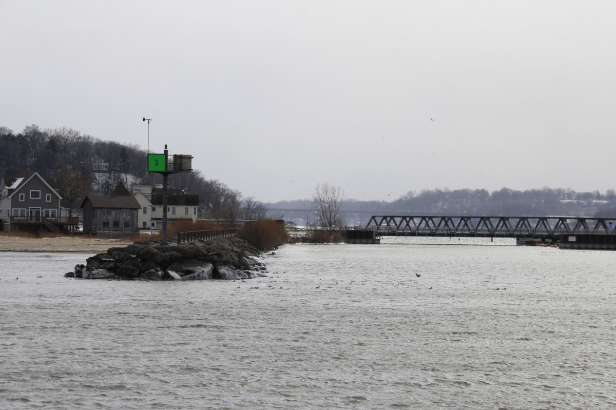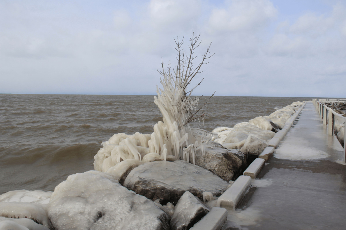 Водные ворота Рочестера.Береговая линия озера Онтарио Видно что сильный, замораживающий, почти северо-морский ветер. ... |