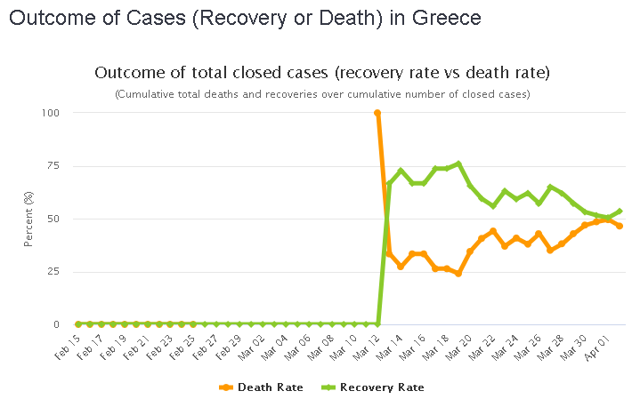 Авдотья 03.04.2020, 10:15 А в Греции какая ситуация? Пишут что они гениально подошли к проблеме и в стране все зшбсь, заболевших мало. https://www.worldometers.info/coronavirus/country/greece/ Судя по графикам, ситуация идёт вверх и непонятно, уже Греция на вершине или будет хуже. График смертей обычный для европейских стран. Ничего особенного. ... |