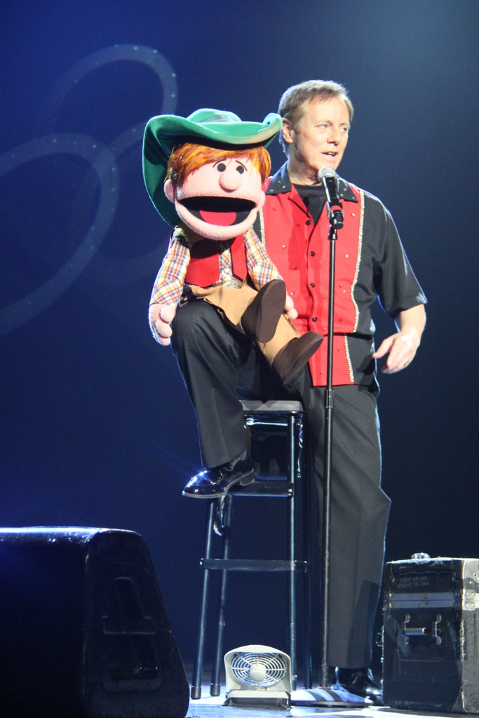 Чувак прикалывается с куклой ковбоем. У меня даже видео этой фигни есть. Прикольно получилось. Он говорит что даже в Белом Доме с этой хохмой выступал. ... |