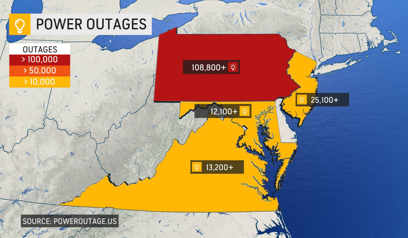 Однако, в Пенсильвании 108К домов без элекричества. А в Нью Джерси 25К Интересно что не показали Западную Вирджинию. ... |