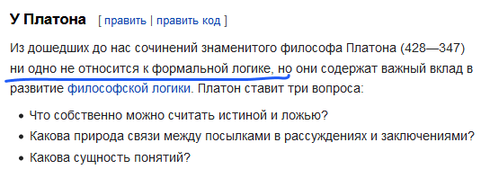 Abigor 19.02.2021, 16:05 Abigor 19.02.2021, 06:22 Гугл по запросу "формальная логика" пока подсовывает сущую ерунду. ![]() Не совсем по этому запросу, и не то что бы ерунду, конечно. Но не находит ту книгу, которую надо. Факт открытия неких законов логики не помешал древним грекам решить, что Земля квадратная. Мастерство оттачивалось веками после этого. Я найду и покажу книгу попозже. Вряд ли у Платона был этот офигенчик. ... |