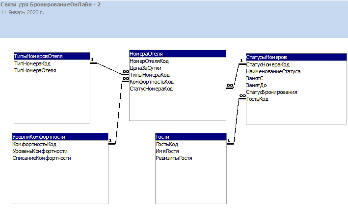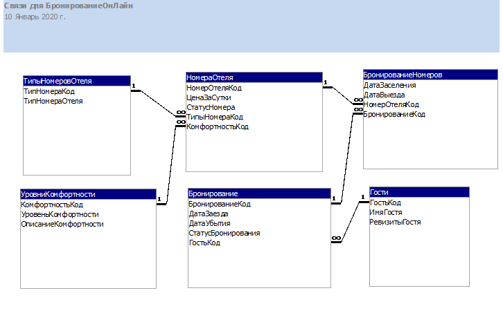 я не деда, но. Много писать не буду, влом. Вместо бронированиеномер и бронирование сделай таблицу занятости номеров и в ней уже указывай бронь если нужно. ... |