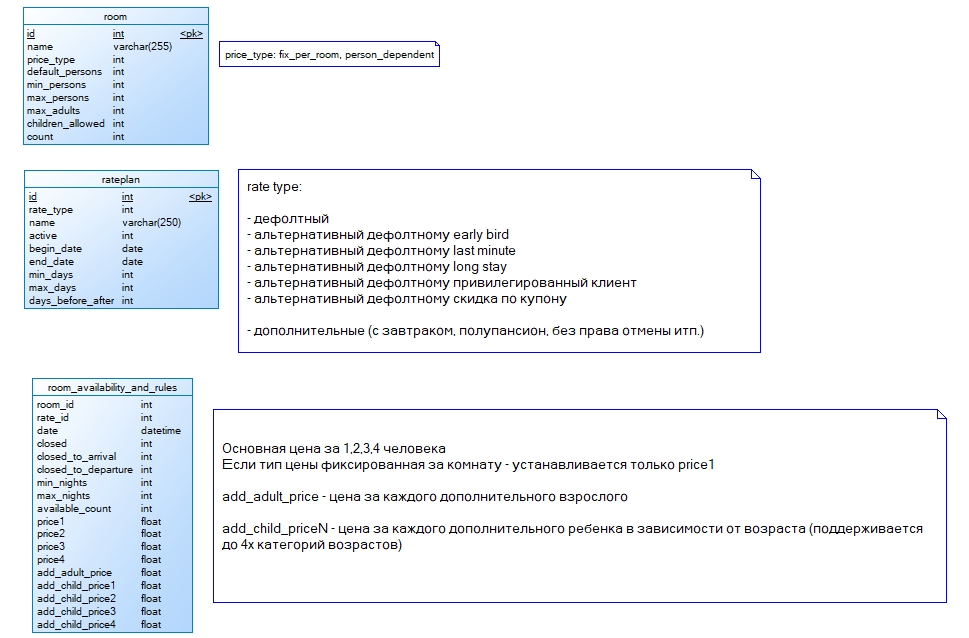 Когда то у нас была дилема. Делать таблицу цен по сезонам и хранить отклогения по определенным дням. Или тупо по каждому дню. .выбрали второе - не пожалели. Оказывается блльшинство ченнел менеддеров также хранят. room_id, rateplan_id,date,price1,price2,.... ... |