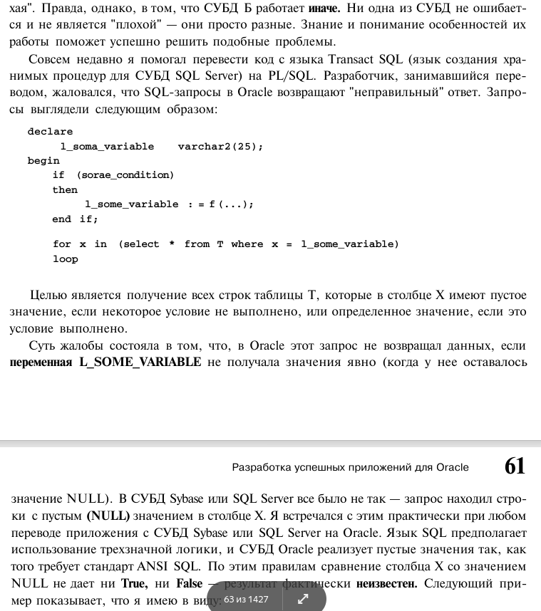 Дырокол 09.03.2021, 18:36 вообще стоит почитать если не читал - это блестящий пример как надо писать технические книжки про сложные системы Так вот мне кажется что у ораклоидов она неправильная. В примере достаточно синтаксис запроса подправить, а не разглагольствовать на 2 страницы. На благо "скуль" ещё "молодой" и не закостеневший. Что даёт возможность к росту. ... |
